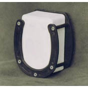 Fits all standard 4 lb. salt blocks. Heavy duty plastic components held together with platic covered bolts. Inver this salt block holder and it can also be used as an attractive bridle holder complete with horseshoe design.